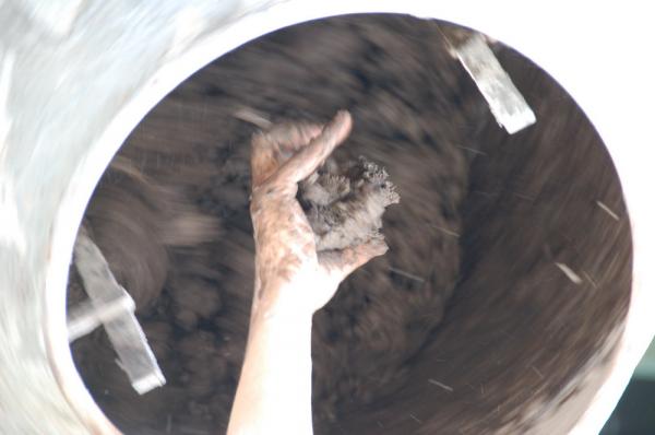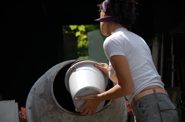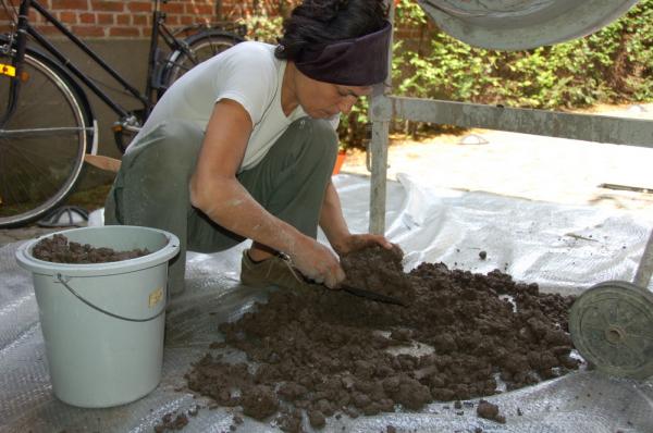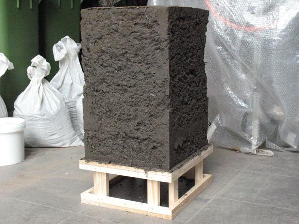 This project offers the opportunity to explore the element 'earth' deeper. It is an occasion to become acquainted with this obvious but hardly known matter. Volunteers will help with the process and the building up of the structure, layer by layer. The rather monotonous actions - the prolonged and repeated mixing and tamping - can cause irritation or stimulation. It is a training in patience - toleration of him/herself - and perseverance."