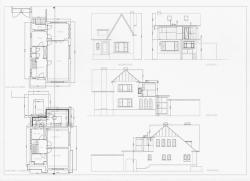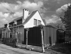 Renovation and extension of an interbellum mansion. The spirit of the interbellum façade is repeated in the extension (which is replacing a cottage style veranda).