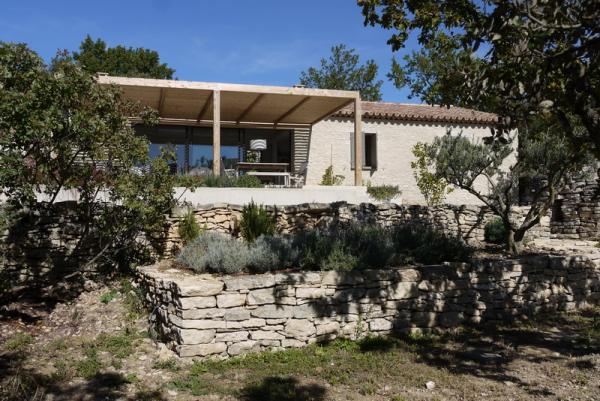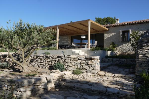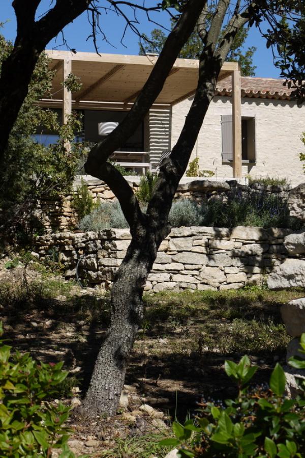 Alle steunmuren in de tuin zijn droog gestapeld met stenen afkomstig van het rotsige terrein.