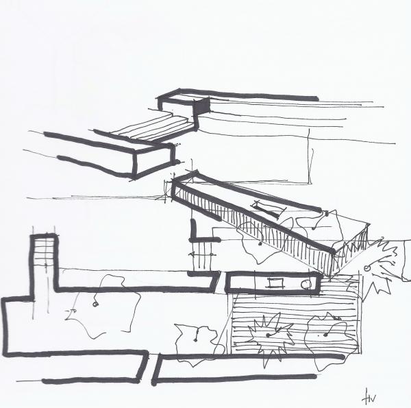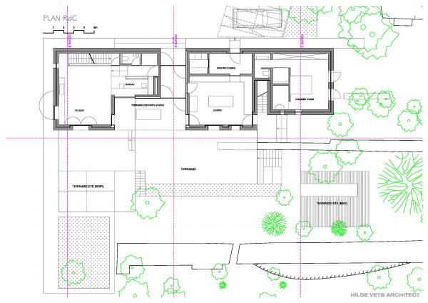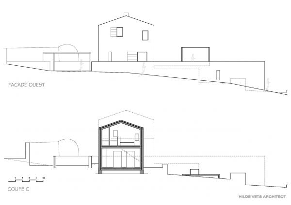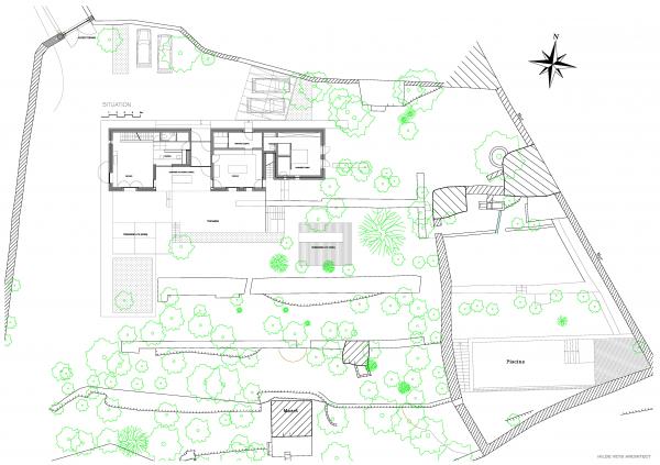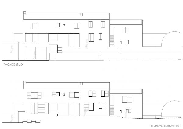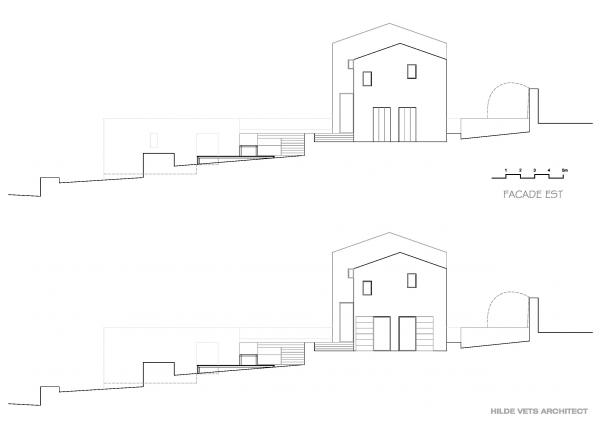 Hoofdhuis (mas) op het domein, bedacht als een traditionele 'mas de base' (lang uitgerekt gebouw, dat zuidwaarts gericht is) met hedendaagse detaillering en plan.
