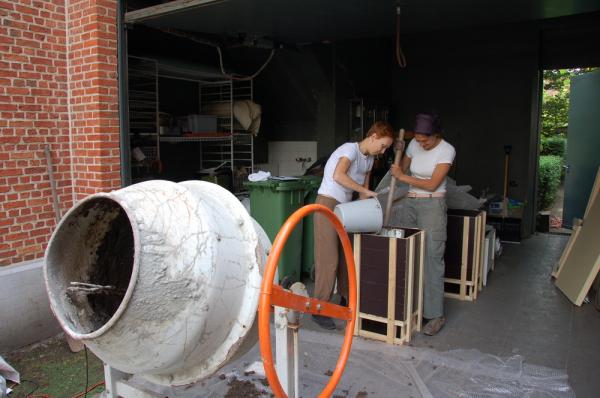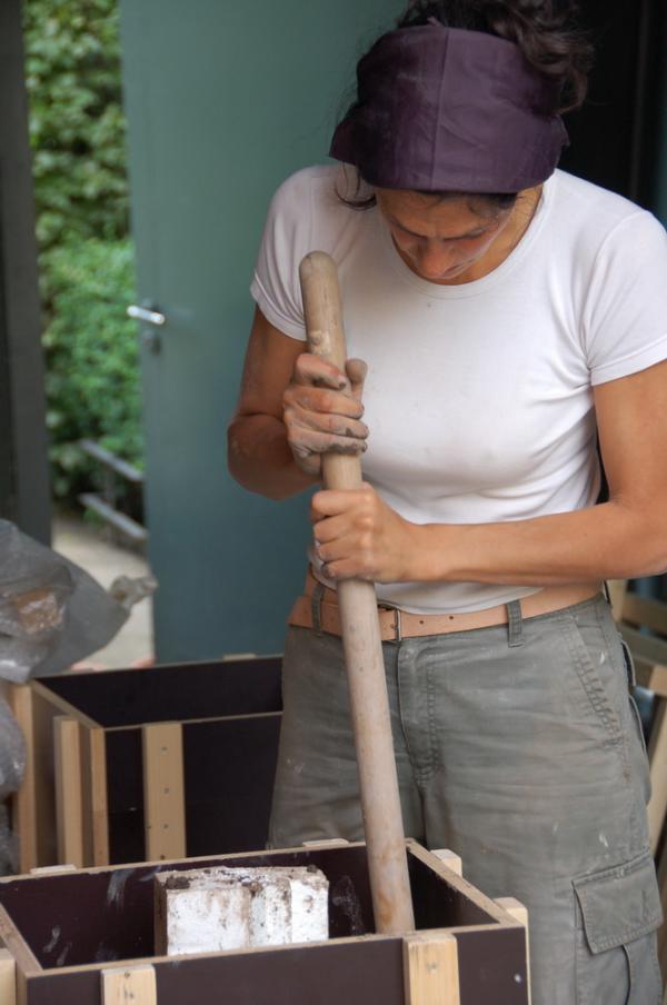 This project offers the opportunity to explore the element 'earth' deeper. It is an occasion to become acquainted with this obvious but hardly known matter. Volunteers will help with the process and the building up of the structure, layer by layer. The rather monotonous actions - the prolonged and repeated mixing and tamping - can cause irritation or stimulation. It is a training in patience - toleration of him/herself - and perseverance."