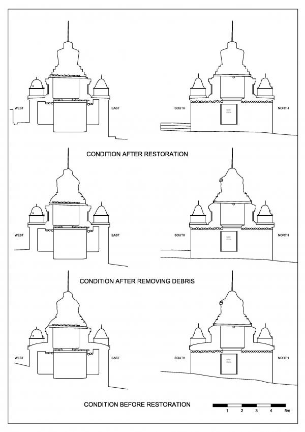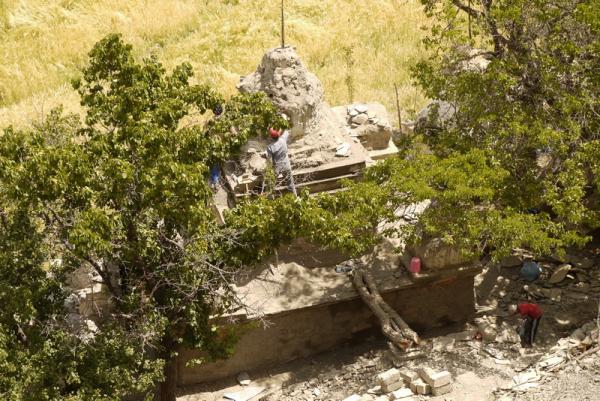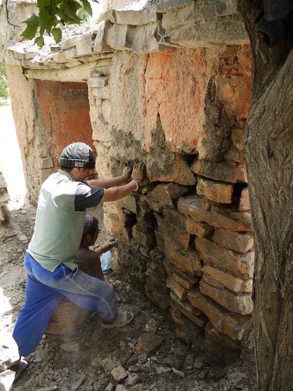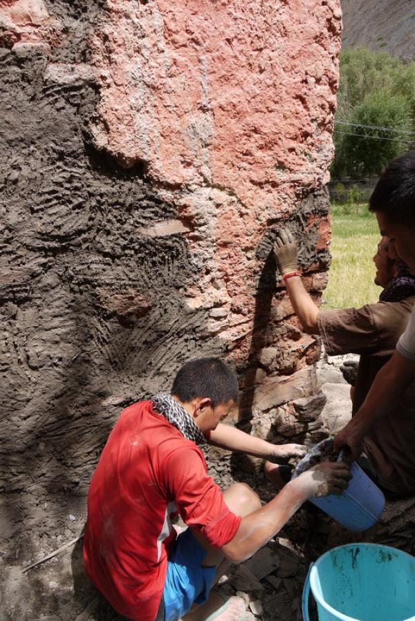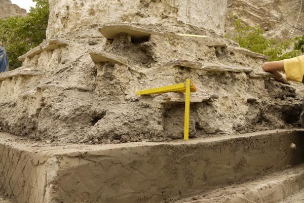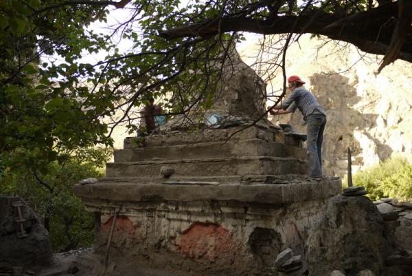 In 2011 Achi Association India started its first project in Ladakh, the restoration of the Kagan Chorten in the village of Wanla. Funded by the Cultural Preservation Program of the German Foreign Office and private donors, the project was implemented during the summer of 2011. The project duration was 4 weeks. The participation and the interest of the village community were overwhelming. It was strongly supported by the local community, ‘Zunu Tsogspa’ village society responsible for the maintenance of chortens and mane walls and its numerous volunteers, by the participants of the Youth Training Group and international conservation experts from Achi Association Switzerland. The restoration was completed in August 2011, when the chorten was ceremoniously blessed by His Holiness Chetsang Rinpoche.