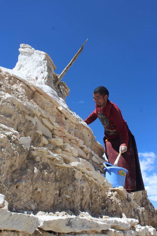 Ven. Konchok Motup had the chörten whitewashed during the consecutive campaign of the wall painting restoration.