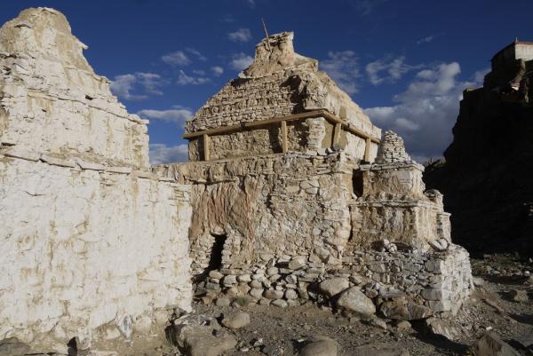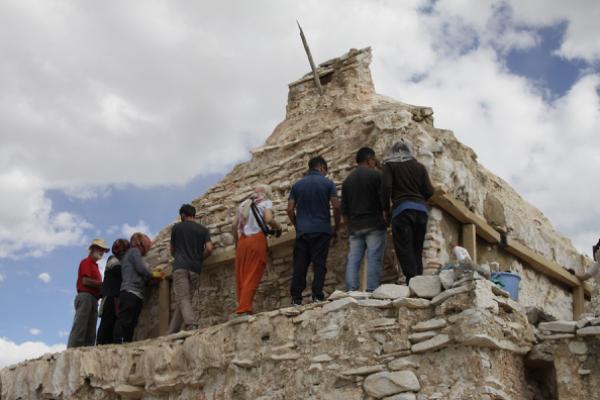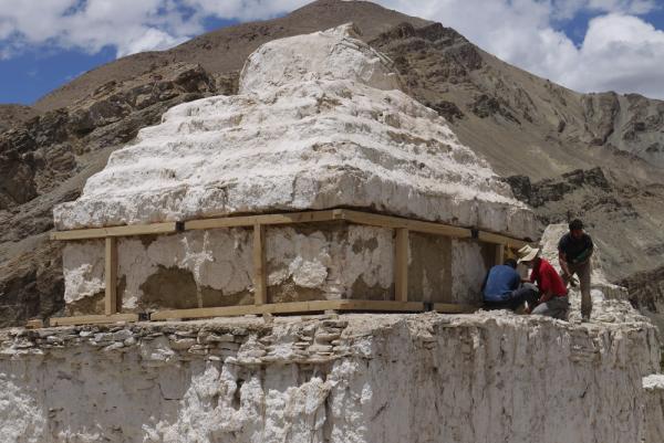 To prevent further movement of the walls of the painted chamber, the team of architects decided to put up an adjustable ring beam around the base of the chörten.